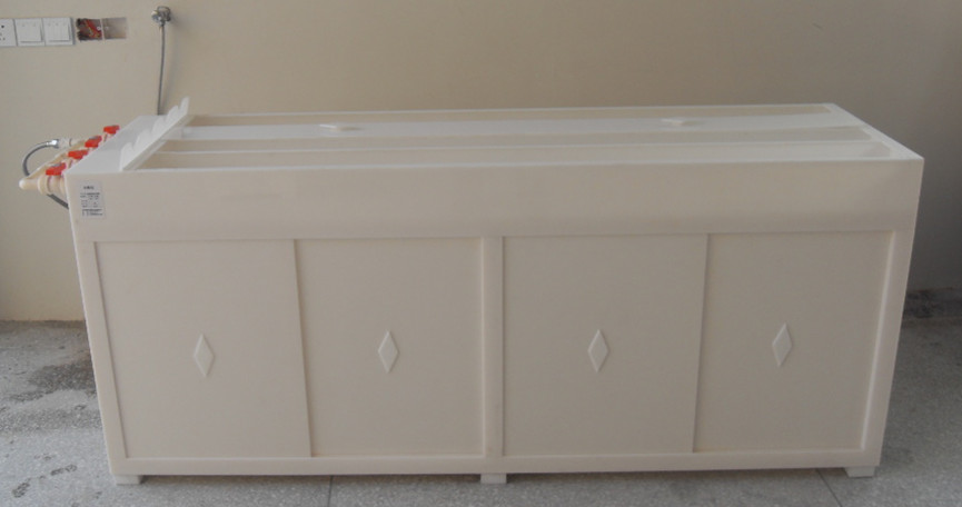 結(jié)構(gòu)材質(zhì):槽體:采用PMMA樹脂板材吸塑成型、抗壓強(qiáng)度高、耐腐蝕易清潔、對人體無毒,不磨損鏡體表面。下柜:采用板材組裝。閥門:采用陶瓷芯片全銅閥門,配備高壓水槍接頭。可根據(jù)使用單位要求配置方槽、立槽數(shù)量。
