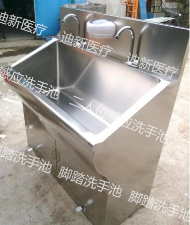 迪新新型不銹鋼醫(yī)用洗手池選用感應(yīng)式、膝碰式和腳踏式三種出水方式,無需手接觸有效的解決了這一難題。迪新不銹鋼醫(yī)用洗手池采用優(yōu)質(zhì)304不銹鋼雙層制作而成,經(jīng)久耐用。槽體設(shè)計依據(jù)人體工程學原理,使用舒適。全不銹鋼槽體,整體無縫設(shè)計,極易清潔。紅外感應(yīng)出水系統(tǒng)配有醫(yī)用水龍頭,反應(yīng)靈敏,抗干擾性強,極大降低了水資源的浪費。自動給液器,使用方便衛(wèi)生。漏電保護設(shè)計,保證了操作人的使用安全。槽體中間特殊靜音處理,造型美觀大方,使用方便?啥ㄖ铺厥庖(guī)格,也可根據(jù)客戶要求配置熱水器和烘干器。