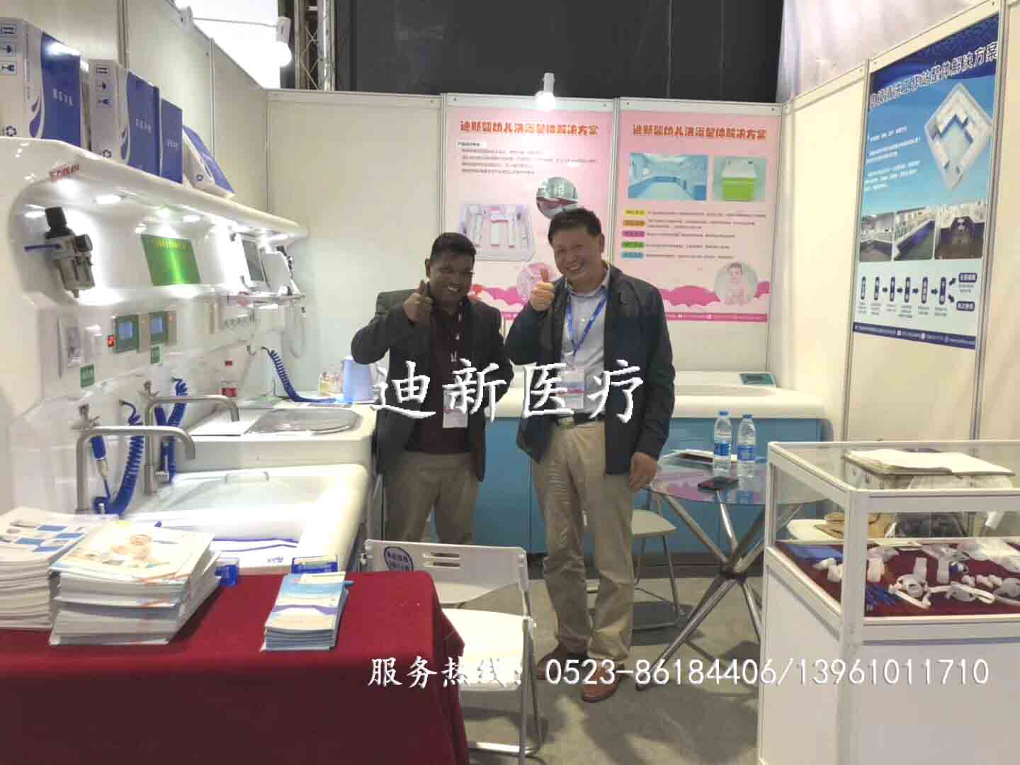 2018年4月11日-14日第79屆中國醫(yī)療器械(春季)博覽會在上海國家會展中心順利舉行,迪新醫(yī)療展位號為8號館Q27,展會的前兩天,迪新銷售團(tuán)隊就現(xiàn)場簽了好幾單,展會第三天,迪新的嬰兒洗浴設(shè)備就受到印度友人的青睞,現(xiàn)場就跟我們王總簽訂了合同。
