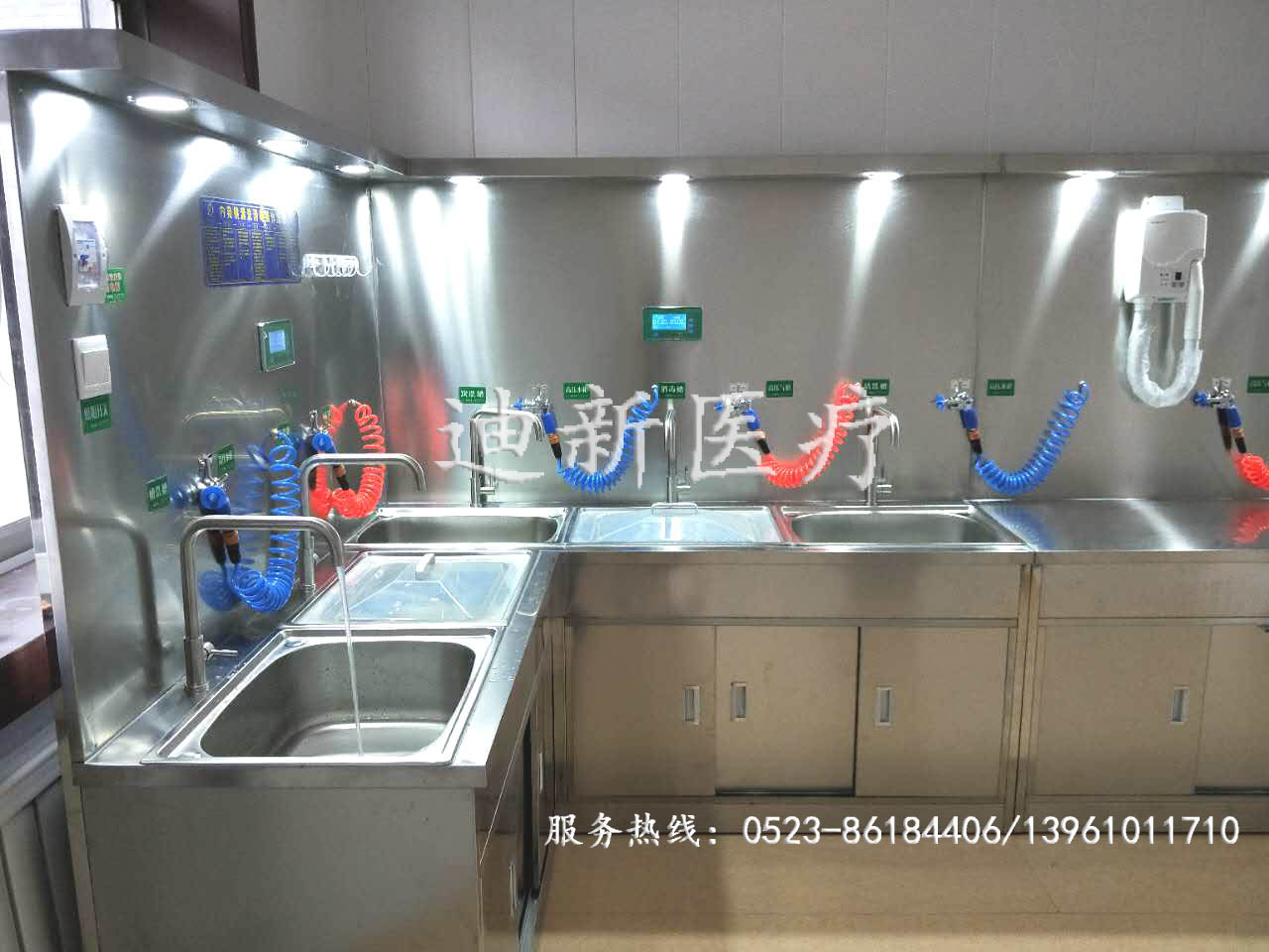 熱烈祝賀山西晉中不銹鋼清洗裝置安裝調(diào)試完畢! 迪新不銹鋼清洗裝置主要采用優(yōu)質(zhì)304不銹鋼材質(zhì)制成,具有耐腐蝕且不容易滋生細菌的特點。 本產(chǎn)品主要由初洗槽、酶洗槽、次洗槽、浸泡槽、末洗槽、干燥臺組成,多槽及干燥臺分程序獨立控制清洗,互不干擾!控制系統(tǒng)主要采用微電腦控制,配備高壓水槍、高壓氣槍、氣體處理器、消毒液處理系統(tǒng)、干燥功能、節(jié)液(酶)系統(tǒng)、測漏系統(tǒng)、水處理系統(tǒng)、給排水系統(tǒng)、照明系統(tǒng)、可選智能控制系統(tǒng)及其他輔助設(shè)備。 本清洗設(shè)備可根據(jù)不同醫(yī)院房間的具體尺寸和布局結(jié)構(gòu)量身訂做,醫(yī)院可根據(jù)自身內(nèi)鏡數(shù)量的多少及診流量來選擇相應的配置。本公司24小時服務熱線:0523-86184406/13961011710    |