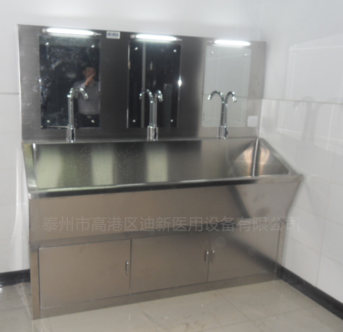 手術室洗手池可以分為單人位、雙人位、三人位、四人位,高低背板。手術室洗手池/洗手槽、醫(yī)用洗手池/洗手槽是為手術醫(yī)務人員專門設計的設備,采用的是304不銹鋼雙層制作,槽身是以人體工程學設計的,靜音防濺,圓弧結(jié)構(gòu)。雙柱超濾組件,具有反沖技術,可以長期使用。 手術室的洗手池可以選裝熱水器、烘手器,自由設定出水溫度,一年四季可以提供恒溫出水,水龍頭自動感應出水,每個洗手位都帶有獨立鏡燈和鏡子。洗手槽采用特制的坡度設計,能夠有效的防止水濺到池外,各水嘴獨立設置,不影響其他水嘴的使用。 細節(jié): 1.鵝頸式手龍頭:保證清潔,采用的是0.1mm超濾鏡可將病菌過濾。 2.自動給皂/液器:使用方便。 3.紅外感應出水系統(tǒng):當雙手靠近的時候,可感應出水,靈敏度高。 4.整體無縫焊接:無縫焊接,不積污垢,易于清潔。 5.不銹鋼下水器:不銹鋼材質(zhì)不易生銹,排水通暢。 6.熱水器、烘干器:可以根據(jù)用戶的需求配置熱水器、烘干器。